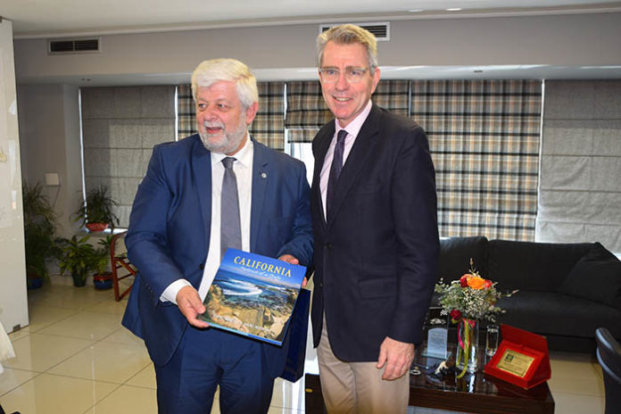Τον Πρέσβη των Ηνωμένων Πολιτειών της Αμερικής στην Αθήνα, κ. Geoffrey Pyatt (Τζέφρι Πάιατ), υποδέχτηκε σήμερα το πρωί στο γραφείο του, ο Δήμαρχος Τρίπολης, Δημήτρης Παυλής.