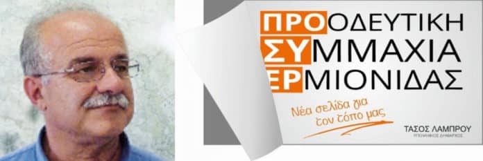 Με τον φίλο μου Τάσο Λάμπρου μας συνδέουν 20 χρόνια κοινής πορείας στην τοπική μας κοινωνία και στην τοπική αυτοδιοίκηση και θεωρώ ότι είναι η καταλληλότερη επιλογή για να αναλάβει τα καθήκοντα του Δημάρχου Ερμιονίδας από την 1η  Σεπτέμβριο 2019.