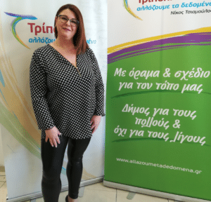 Ονομάζομαι Σταματοπούλου Ανδριανή του Σπύρου και της Μαρίας και έχω γεννηθεί το 1987. Κατοικώ στο Μερκοβούνι με τον σύζυγό μου Σταυρόπουλο Γεώργιο και είμαι ιδιοκτήτρια του Ζαχαροπλαστείου – Μεμέλι Δίπλες. Θέτω για πρώτη φορά υποψηφιότητα με την ανεξάρτητη παράταξη «Τρίπολη – Αλλάζουμε τα δεδομένα», γιατί πιστεύω ότι πρέπει να δώσουμε την ευκαιρία σε έναν νέο και δυναμικό άνθρωπο να προσπαθήσει να αλλάξει τα δεδομένα στον τόπο μας. Τον Νίκο τον γνωρίζω πολλά χρόνια, τον εκτιμώ, τον εμπιστεύομαι και επειδή παρακολουθώ τον τρόπο που διαχειρίζεται τα θέματα του Δήμου μας τόσα χρόνια ως Αντιπολίτευση, αποφάσισα να σταθώ στο πλευρό του και να τον βοηθήσω. Είναι ο μόνος που μπορεί να καταφέρει να νοικοκυρέψει τον Δήμο που μεγαλώσαμε και θα μεγαλώσουν και τα παιδιά μας. Αξίζει να προσπαθήσουμε για το καλύτερο που δικαιούμαστε και έχουμε τόσα χρόνια στερηθεί.