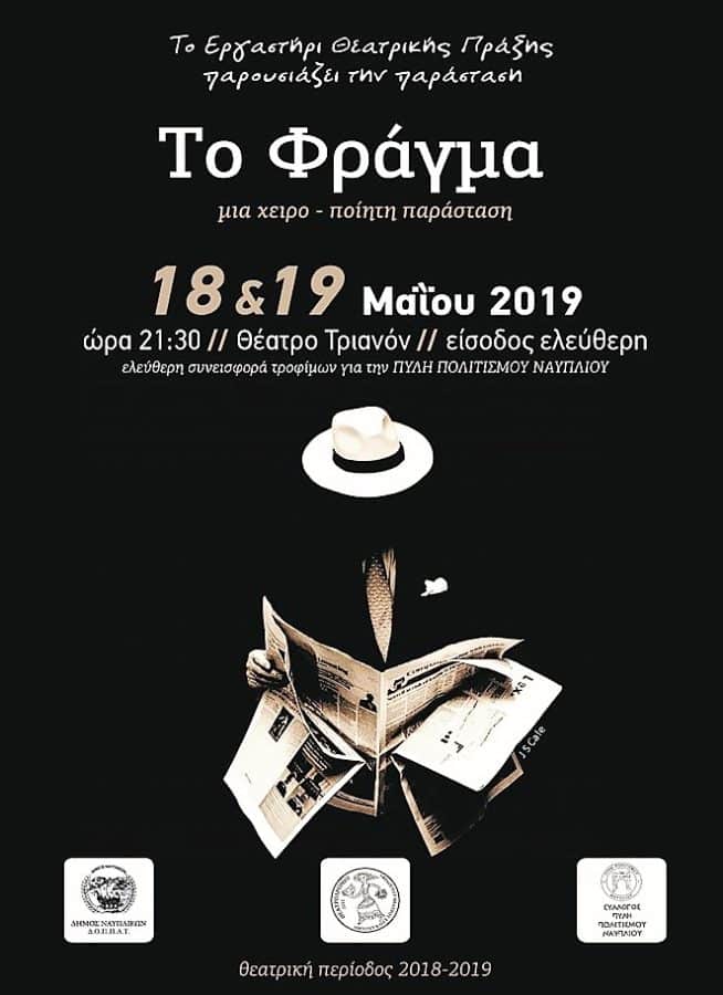 Η παράσταση θα δοθεί στις 18 και 19 Μαΐου, ώρα 9.30 μ.μ., στο ΘΕΑΤΡΟ ΤΡΙΑΝΟΝ Ναυπλίου.