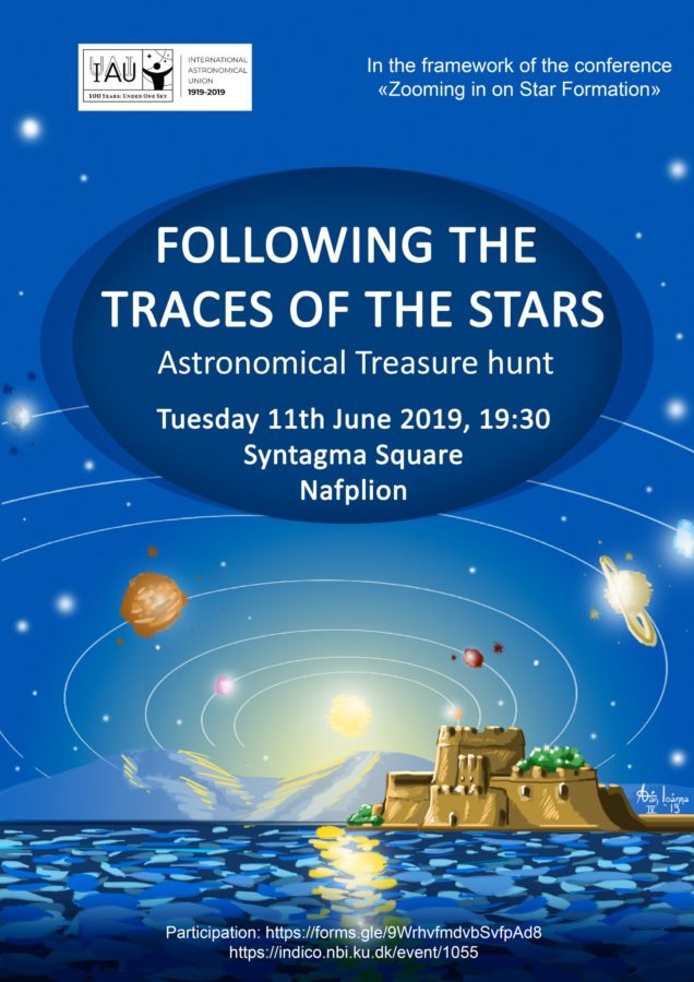 Το διεθνές συνέδριο “Zooming in on Star Formation” θέλοντας να ανταποδώσει την ευγενική φιλοξενία των συνέδρων του στο Ναύπλιο διοργανώνει επίσης δύο δράσεις ανοιχτές για το κοινό. Την Δευτέρα 10 Ιουνίου 2019 στις 19:30, οργανώνεται με την υποστήριξη του Κέντρου Ελληνικών Σπουδών Ελλάδος του Παν/μίου του Harvard, ένα σεμινάριο στα Ελληνικά στην αίθουσα διαλέξεων του κέντρου, ανοιχτό για όλους. Εκεί η Δρ. Δανάη Πολυχρόνη θα κάνει μια γενική επισκόπηση των θεμάτων που θα συζητηθούν στο συνεδρίου.