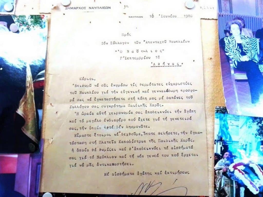 Για αυτούς τους ανθρώπους ο σύλλογος είναι το ίδιο το Ναύπλιο! Όταν μας επισκέπτεται εδώ, στα γραφεία μας η χορωδία του ΔΟΠΠΑΤ και αποδίδει τον ύμνο του «Χαίρε Ανάπλι» όλοι οι παριστάμενοι σηκώνονται όρθιοι και δακρύζουν; Τους λείπει η πατρίδα, γιατί δεν την ζουν στην καθημερινότητα τους».