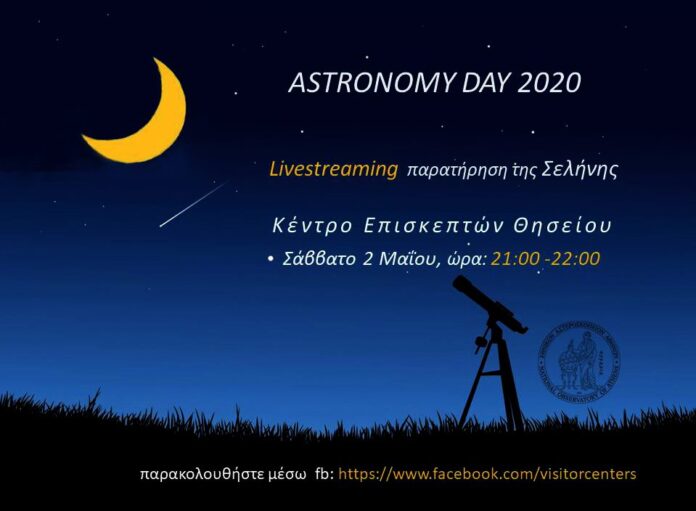 Σήμερα το βράδυ το Εθνικόν Αστεροσκοπείον Αθηνών γιορτάζει την Ημέρα Αστρονομίας 2020 μεταδίδοντας ζωντανά την εικόνα της Σελήνης από το Κέντρο Επισκεπτών Θησείου. Από τις 21:00 ως τις 22:00 θα μπορείτε να παρατηρήσετε την Σελήνη μέσω του link εδώ. Τα ιστορικά τηλεσκόπια του ΕΑΑ στην Πνύκα και στη Πεντέλη θα ξανανοίξουν στο κοινό και τους μαθητές όταν το επιτρέψουν οι συνθήκες.