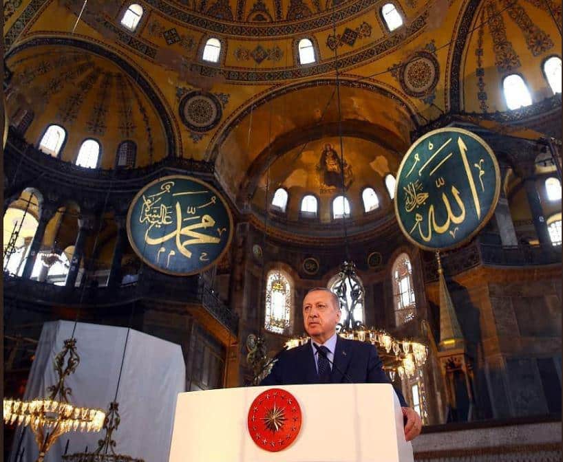 Παρόμοιες συνθήκες διχασμού και εσωτερικών διενέξεων, ερίδων και αντιθέσεων είχαν δημιουργηθεί πριν την Άλωση και τη διευκόλυναν πολύ σημαντικά. Ακόμη και αυτή η μετατροπή, από Μουσείο σε Τέμενος – Τζαμί, υπακούει και ακολουθεί την προσωπική πολιτική του Ερντογάν, που έχει στόχο την αναθεώρηση του κοσμικού κράτους του γενοκτόνου Κεμάλ Ατατούρκ και την αναθεώρηση της Συνθήκης της Λωζάνης και ακόμα γενικότερα, την αποδόμηση του Ατατούρκ και την καταγραφή της ευθύνης του για τη μείωση της Οθωμανικής Αυτοκρατορίας, με την υπογραφή της Συνθήκης.