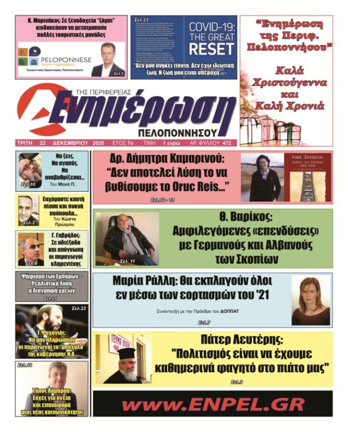 Πρωτοσέλιδα Πρωτοσέλιδο 22 Δεκεμβρίου 2020 Από Ενημέρωση Πελοποννήσου 21 Δεκεμβρίου 2020 FacebookTwitterViberWhatsApp Ακολουθήστε την Ενημέρωση Πελοποννήσου στο Facebook Αποκλειστικές Έρευνες – Συνεντεύξεις και ΆρθραΕιδήσεις από: Ναύπλιο – Άργος – Ερμιονίδα – Τρίπολη – Κορινθία – Αθλητικά – Γερανιός-2xalkidisfrontlabrou ΑΞΙΖΕΙ ΝΑ ΔΙΑΒΑΣΕΤΕ Featured 2 ΕΛΤΑ Αργολίδας: Κενές απαντήσεις και καμία δέσμευση από το Υπουργείο 17 Απριλίου 2026 Featured 2 Τριήμερο Θεατροπαιδαγωγικών δράσεων στο Ναύπλιο 17 Απριλίου 2026 Featured 2 “Σεληνιακό τοπίο” ο δρόμος Τρίπολης – Στεμνίτσας 17 Απριλίου 2026 Featured 2 Υπεύθυνες οι υπηρεσίες της Περιφέρειας για τον κάμπο των Διδύμων 17 Απριλίου 2026 Αργολίδα Ημερίδα στο Ναύπλιο: Σεξουαλική Κακοποίηση Ατόμων με Αναπηρία 17 Απριλίου 2026 Ελλάδα “Επείγουσα ανάγκη για μέτρα ενίσχυσης των ΑμεΑ” 17 Απριλίου 2026 Αργολίδα ΚΚΕ: Μεγάλη Εκδήλωση στο Ναύπλιο για την Ακροναυπλία 16 Απριλίου 2026 Αργολίδα Ημερίδα Επιμελητηρίου Αργολίδας: “Παράγουμε στην Ελλάδα” 16 Απριλίου 2026 Αργολίδα Γονίδια και Επιλογές: Εκδήλωση του ΚΕΣ στο Ναύπλιο για τη Γενετική 16 Απριλίου 2026 Τελευταίες ειδήσεις Αργολίδα Ημερίδα στο Ναύπλιο: Σεξουαλική Κακοποίηση Ατόμων με Αναπηρία 17 Απριλίου 2026 Ελλάδα “Επείγουσα ανάγκη για μέτρα ενίσχυσης των ΑμεΑ” 17 Απριλίου 2026 Αργολίδα ΚΚΕ: Μεγάλη Εκδήλωση στο Ναύπλιο για την Ακροναυπλία 16 Απριλίου 2026 Αργολίδα Ημερίδα Επιμελητηρίου Αργολίδας: “Παράγουμε στην Ελλάδα” 16 Απριλίου 2026 Αργολίδα Γονίδια και Επιλογές: Εκδήλωση του ΚΕΣ στο Ναύπλιο για τη Γενετική 16 Απριλίου 2026 Περιφέρεια 14 συλλήψεις σε Αργολίδα, Κορινθία & Λακωνία 16 Απριλίου 2026 Περιφέρεια Σοκαριστικά ευρήματα στον Πάρνωνα: 95 δηλητηριασμένα δολώματα και ένας νεκρός σκύλος 16 Απριλίου 2026 Αθλητισμός Ο παλμός του μπάσκετ χτυπά δυνατά στην Τρίπολη 16 Απριλίου 2026 Τα πιο δημοφιλη Υπεύθυνες οι υπηρεσίες της Περιφέρειας για τον κάμπο των Διδύμων Featured 2 17 Απριλίου 2026 Όταν ο Τόνι Πινέλι συνάντησε τον Δημήτρη Κουρούνη Άρθρα 17 Φεβρουαρίου 2020 Πανικόβλητος συκοφάντης ο Δήμαρχος Γεωργόπουλος Άρθρα 10 Απριλίου 2026 ΕΛΤΑ Αργολίδας: Κενές απαντήσεις και καμία δέσμευση από το Υπουργείο Featured 2 17 Απριλίου 2026 “Σεληνιακό τοπίο” ο δρόμος Τρίπολης – Στεμνίτσας Featured 2 17 Απριλίου 2026 Αρχική σελίδα