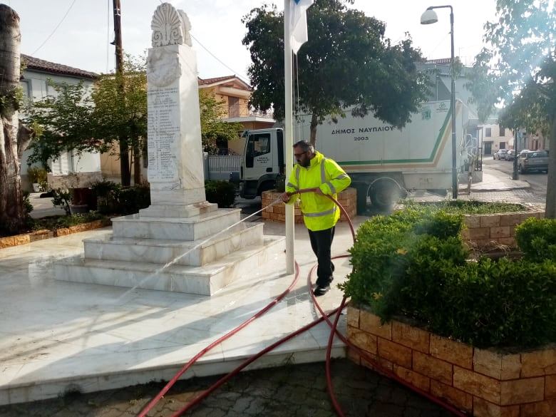 Τα τεχνικά συνεργεία και τα συνεργεία καθαριότητας του Δήμου Ναυπλιέων πραγματοποίησαν εργασίες αποκατάστασης, βαψίματος, κλαδέματος και γενικότερου καθαρισμού με την χρήση του ειδικού μηχανήματος σκούπα που διαθέτει ο Δήμος στην Τοπική Κοινότητα του Αγίου Αδριανού.
