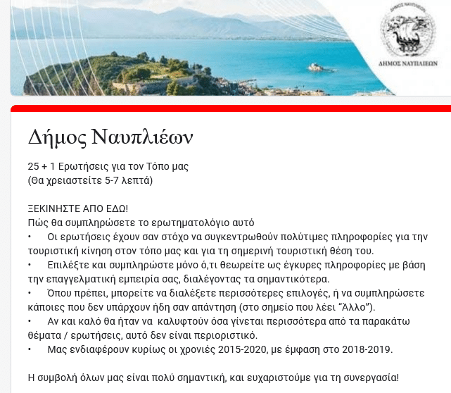 Οι ερωτήσεις έχουν σαν στόχο να συγκεντρωθούν πολύτιμες πληροφορίες για την τουριστική κίνηση στον τόπο μας και για τη σημερινή τουριστική θέση του.