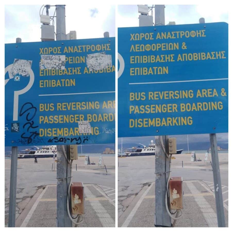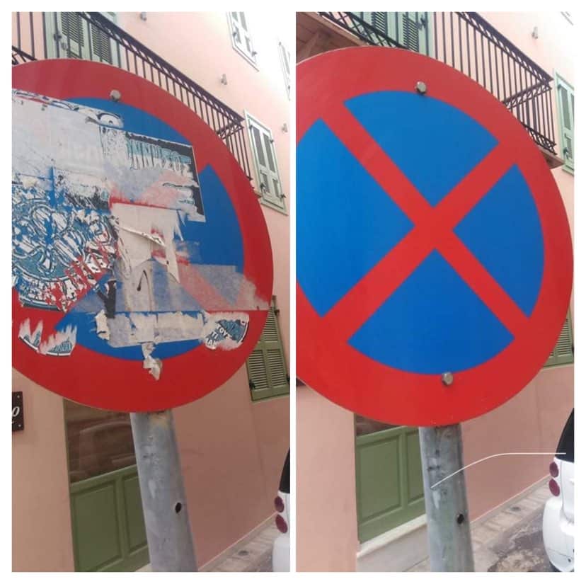 Καθαρισμό και συντήρηση των πινακίδων οδικής κυκλοφορίας στις οδούς της παλιάς πόλης του Ναυπλίου που παρουσιάζουν πρόβλημα ρύπανσης και είναι καλυμμένες από αυτοκόλλητα, σπρέι και μαρκαδόρους, πραγματοποίησε ο Δήμος Ναυπλιέων.