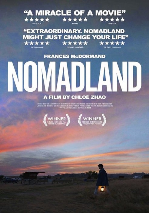 ➤ Η οδύσσειά της στους αυτοκινητοδρόμους, τις ερήμους και τον απέραντο ορίζοντα μιας Αμερικής που μοιάζει με σύγχρονη Άγρια Δύση εμπνέει στην Κλόε Ζάο ένα ήρεμο έπος, ένα μινιμαλιστικό road movie το οποίο η Φράνσις ΜακΝτόρμαντ επικοινωνεί μοναδικά μέσα από το πρόσωπο, τα βλέμματά της, την εκφραστική γλώσσα του σώματός της, παραδίδοντας άλλη μια σπουδαία ερμηνεία σε μια από τις καλύτερες ταινίες της χρονιάς.