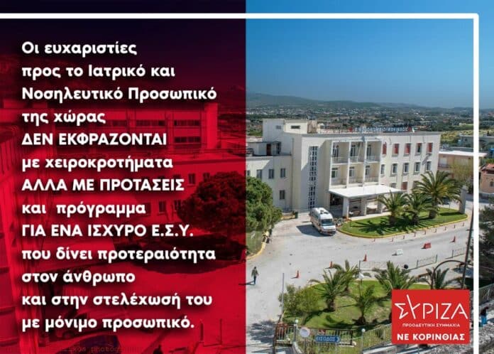 Ο ΣΥΡΙΖΑ Κορινθίας απαντά στον Ιατρικό Σύλλογο: “Η ανακοίνωσή σας ταιριάζει περισσότερο σε εκπροσώπους του υπουργείου Υγείας και της Κυβέρνησης”