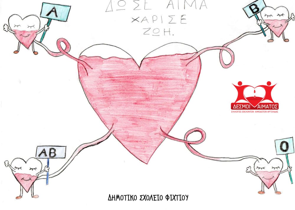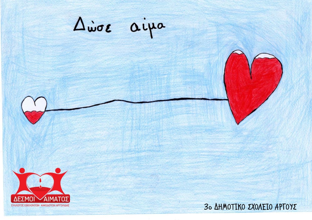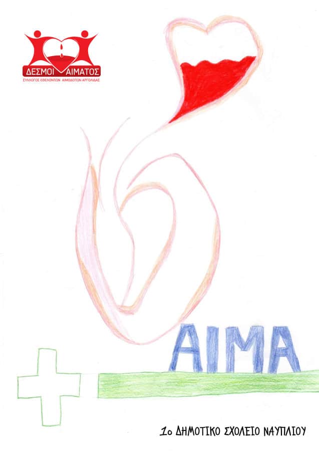Στα πλαίσια εορτασμού 10 ετών συνεχούς παρουσίας και δράσης του Συλλόγου Εθελοντών Αιμοδοτών Αργολίδας «Δεσμοί Αίματος» και του εορτασμού της Παγκόσμιας Ημέρας Εθελοντή Αιμοδότη, στις 14 Ιουνίου, διοργανώθηκε από το Σύλλογό μας, σε συνεργασία με τη Διεύθυνση Πρωτοβάθμιας Εκπαίδευσης Αργολίδας, Διαγωνισμός Ζωγραφικής με θέμα την Αιμοδοσία, για τους μαθητές των Ε΄ και ΣΤ΄ Τάξεων.