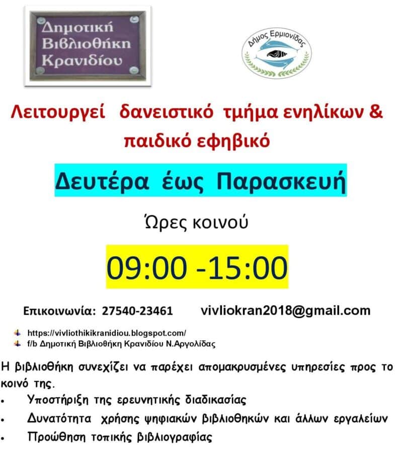Αργολίδα Κρανίδι: Δημοτική βιβλιοθήκη ώρα για… διάβασμα Από Ενημέρωση Πελοποννήσου 2 Ιουνίου 2021 FacebookTwitterViberWhatsApp Ακολουθήστε την Ενημέρωση Πελοποννήσου στο Facebook Αποκλειστικές Έρευνες – Συνεντεύξεις και ΆρθραΕιδήσεις από: Ναύπλιο – Άργος – Ερμιονίδα – Τρίπολη – Κορινθία – Αθλητικά – Γερανιός-2xalkidisfrontlabrou ΑΞΙΖΕΙ ΝΑ ΔΙΑΒΑΣΕΤΕ Featured 2 “Όλα πήγαιναν καλά μέχρι που ΜΕΓΑΛΩΣΑ”: Παράσταση στη Ν. Κίο 20 Απριλίου 2026 Featured 2 Διήμερο δράσης για την Ακαδημία του Φείδωνα 20 Απριλίου 2026 Featured 2 Παρουσίαση έρευνας για την Παλιά Πόλη του Ναυπλίου 19 Απριλίου 2026 Featured 2 Το πέρασμα στην εποχή των ισχνών αγελάδων 19 Απριλίου 2026 Περιφέρεια Συνεδρίαση της Πολιτικής Προστασίας Πελοποννήσου… 19 Απριλίου 2026 Αρκαδία Αρκαδία: Επίσκεψη Τασούλα στην Έπαυλη του Ηρώδη Αττικού 19 Απριλίου 2026 Ελλάδα Τελετή ορκωμοσίας – Executive MBA in Hotel Management 19 Απριλίου 2026 Κορινθία 4ο Διεθνές Νεανικό Φεστιβάλ Αρχαίου Δράματος Κορίνθου 18 Απριλίου 2026 Αργολίδα Ημερίδα στο Ναύπλιο: Σεξουαλική Κακοποίηση Ατόμων με Αναπηρία 17 Απριλίου 2026 Τελευταίες ειδήσεις Περιφέρεια Συνεδρίαση της Πολιτικής Προστασίας Πελοποννήσου… 19 Απριλίου 2026 Αρκαδία Αρκαδία: Επίσκεψη Τασούλα στην Έπαυλη του Ηρώδη Αττικού 19 Απριλίου 2026 Ελλάδα Τελετή ορκωμοσίας – Executive MBA in Hotel Management 19 Απριλίου 2026 Κορινθία 4ο Διεθνές Νεανικό Φεστιβάλ Αρχαίου Δράματος Κορίνθου 18 Απριλίου 2026 Αργολίδα Ημερίδα στο Ναύπλιο: Σεξουαλική Κακοποίηση Ατόμων με Αναπηρία 17 Απριλίου 2026 Αργολίδα ΕΛΤΑ Αργολίδας: Κενές απαντήσεις και καμία δέσμευση από το Υπουργείο 17 Απριλίου 2026 Αργολίδα Τριήμερο Θεατροπαιδαγωγικών δράσεων στο Ναύπλιο 17 Απριλίου 2026 Περιφέρεια “Σεληνιακό τοπίο” ο δρόμος Τρίπολης – Στεμνίτσας 17 Απριλίου 2026 Τα πιο δημοφιλη Το πέρασμα στην εποχή των ισχνών αγελάδων Featured 2 19 Απριλίου 2026 Υπεύθυνες οι υπηρεσίες της Περιφέρειας για τον κάμπο των Διδύμων Άρθρα 17 Απριλίου 2026 Τελετή ορκωμοσίας – Executive MBA in Hotel Management Ελλάδα 19 Απριλίου 2026 Ντέπη Παπαδημητρίου – Αφιέρωμα στη “Σιδηρά Κυρία” του Θαλασσίου σκι Άρθρα 25 Ιουνίου 2020 Πανικόβλητος συκοφάντης ο Δήμαρχος Γεωργόπουλος Άρθρα 10 Απριλίου 2026 Αρχική σελίδα