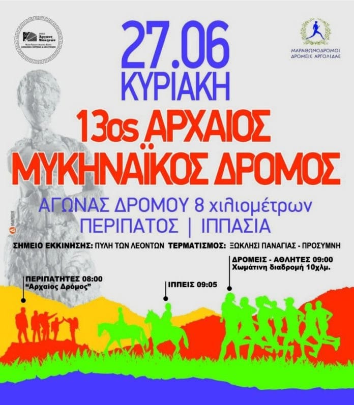 Oι Μαραθωνοδρόμοι Δρομείς Αργολίδας, Μέλος της Ε.Ο.Σ.Α.Μ.Α-Υ. ο σύλλογος οι φίλοι των Μυκηνών και του Μυκηναϊκού Πολιτισμού και η Τοπική Κοινότητα Προσύμνης συνδιοργανώνουν  τον 13ο Αρχαίο Μυκηναϊκό Δρόμο την Κυριακή 27 Ιουνίου 2021, με την υποστήριξη του Νομικού Προσώπου Κοινωνικής Μέριμνας και Αθλητισμού του Δήμου Άργους – Μυκηνών και με τη συμμέτοχη του Πολιτιστικού συλλόγου Προσύμνης.