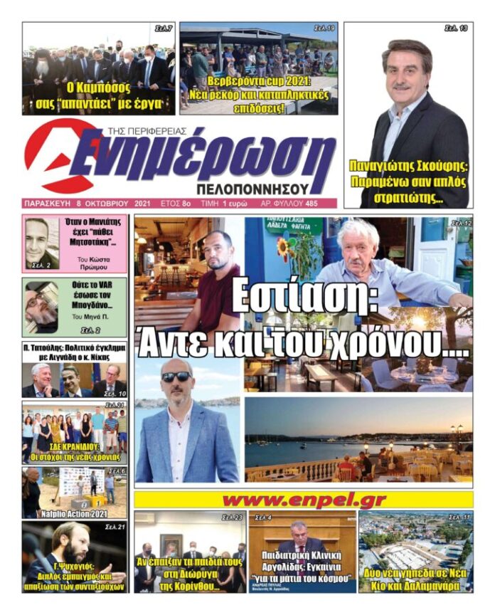 Πρωτοσέλιδα Πρωτοσέλιδο 8 Οκτωβρίου 2021 Από Ενημέρωση Πελοποννήσου 7 Οκτωβρίου 2021 FacebookTwitterViberWhatsApp Ακολουθήστε την Ενημέρωση Πελοποννήσου στο Facebook Αποκλειστικές Έρευνες – Συνεντεύξεις και ΆρθραΕιδήσεις από: Ναύπλιο – Άργος – Ερμιονίδα – Τρίπολη – Κορινθία – Αθλητικά – Γερανιός-2xalkidisfrontlabrou ΑΞΙΖΕΙ ΝΑ ΔΙΑΒΑΣΕΤΕ Featured 2 ΕΛΤΑ Αργολίδας: Κενές απαντήσεις και καμία δέσμευση από το Υπουργείο 17 Απριλίου 2026 Featured 2 Τριήμερο Θεατροπαιδαγωγικών δράσεων στο Ναύπλιο 17 Απριλίου 2026 Featured 2 “Σεληνιακό τοπίο” ο δρόμος Τρίπολης – Στεμνίτσας 17 Απριλίου 2026 Featured 2 Υπεύθυνες οι υπηρεσίες της Περιφέρειας για τον κάμπο των Διδύμων 17 Απριλίου 2026 Αργολίδα Ημερίδα στο Ναύπλιο: Σεξουαλική Κακοποίηση Ατόμων με Αναπηρία 17 Απριλίου 2026 Ελλάδα “Επείγουσα ανάγκη για μέτρα ενίσχυσης των ΑμεΑ” 17 Απριλίου 2026 Αργολίδα ΚΚΕ: Μεγάλη Εκδήλωση στο Ναύπλιο για την Ακροναυπλία 16 Απριλίου 2026 Αργολίδα Ημερίδα Επιμελητηρίου Αργολίδας: “Παράγουμε στην Ελλάδα” 16 Απριλίου 2026 Αργολίδα Γονίδια και Επιλογές: Εκδήλωση του ΚΕΣ στο Ναύπλιο για τη Γενετική 16 Απριλίου 2026 Τελευταίες ειδήσεις Αργολίδα Ημερίδα στο Ναύπλιο: Σεξουαλική Κακοποίηση Ατόμων με Αναπηρία 17 Απριλίου 2026 Ελλάδα “Επείγουσα ανάγκη για μέτρα ενίσχυσης των ΑμεΑ” 17 Απριλίου 2026 Αργολίδα ΚΚΕ: Μεγάλη Εκδήλωση στο Ναύπλιο για την Ακροναυπλία 16 Απριλίου 2026 Αργολίδα Ημερίδα Επιμελητηρίου Αργολίδας: “Παράγουμε στην Ελλάδα” 16 Απριλίου 2026 Αργολίδα Γονίδια και Επιλογές: Εκδήλωση του ΚΕΣ στο Ναύπλιο για τη Γενετική 16 Απριλίου 2026 Περιφέρεια 14 συλλήψεις σε Αργολίδα, Κορινθία & Λακωνία 16 Απριλίου 2026 Περιφέρεια Σοκαριστικά ευρήματα στον Πάρνωνα: 95 δηλητηριασμένα δολώματα και ένας νεκρός σκύλος 16 Απριλίου 2026 Αθλητισμός Ο παλμός του μπάσκετ χτυπά δυνατά στην Τρίπολη 16 Απριλίου 2026 Τα πιο δημοφιλη Υπεύθυνες οι υπηρεσίες της Περιφέρειας για τον κάμπο των Διδύμων Featured 2 17 Απριλίου 2026 Όταν ο Τόνι Πινέλι συνάντησε τον Δημήτρη Κουρούνη Άρθρα 17 Φεβρουαρίου 2020 ΕΛΤΑ Αργολίδας: Κενές απαντήσεις και καμία δέσμευση από το Υπουργείο Featured 2 17 Απριλίου 2026 Πανικόβλητος συκοφάντης ο Δήμαρχος Γεωργόπουλος Άρθρα 10 Απριλίου 2026 “Σεληνιακό τοπίο” ο δρόμος Τρίπολης – Στεμνίτσας Featured 2 17 Απριλίου 2026 Αρχική σελίδα