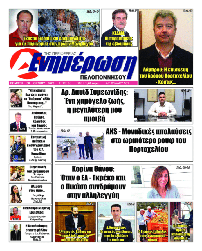 Πρωτοσέλιδα Πρωτοσέλιδο 30 Ιουνίου 2022 Από Ενημέρωση Πελοποννήσου 29 Ιουνίου 2022 FacebookTwitterViberWhatsApp Ακολουθήστε την Ενημέρωση Πελοποννήσου στο Facebook Αποκλειστικές Έρευνες – Συνεντεύξεις και ΆρθραΕιδήσεις από: Ναύπλιο – Άργος – Ερμιονίδα – Τρίπολη – Κορινθία – Αθλητικά – Γερανιός-2xalkidisfrontlabrou ΑΞΙΖΕΙ ΝΑ ΔΙΑΒΑΣΕΤΕ Featured 2 ΕΛΤΑ Αργολίδας: Κενές απαντήσεις και καμία δέσμευση από το Υπουργείο 17 Απριλίου 2026 Featured 2 Τριήμερο Θεατροπαιδαγωγικών δράσεων στο Ναύπλιο 17 Απριλίου 2026 Featured 2 “Σεληνιακό τοπίο” ο δρόμος Τρίπολης – Στεμνίτσας 17 Απριλίου 2026 Featured 2 Υπεύθυνες οι υπηρεσίες της Περιφέρειας για τον κάμπο των Διδύμων 17 Απριλίου 2026 Αργολίδα Ημερίδα στο Ναύπλιο: Σεξουαλική Κακοποίηση Ατόμων με Αναπηρία 17 Απριλίου 2026 Ελλάδα “Επείγουσα ανάγκη για μέτρα ενίσχυσης των ΑμεΑ” 17 Απριλίου 2026 Αργολίδα ΚΚΕ: Μεγάλη Εκδήλωση στο Ναύπλιο για την Ακροναυπλία 16 Απριλίου 2026 Αργολίδα Ημερίδα Επιμελητηρίου Αργολίδας: “Παράγουμε στην Ελλάδα” 16 Απριλίου 2026 Αργολίδα Γονίδια και Επιλογές: Εκδήλωση του ΚΕΣ στο Ναύπλιο για τη Γενετική 16 Απριλίου 2026 Τελευταίες ειδήσεις Αργολίδα Ημερίδα στο Ναύπλιο: Σεξουαλική Κακοποίηση Ατόμων με Αναπηρία 17 Απριλίου 2026 Ελλάδα “Επείγουσα ανάγκη για μέτρα ενίσχυσης των ΑμεΑ” 17 Απριλίου 2026 Αργολίδα ΚΚΕ: Μεγάλη Εκδήλωση στο Ναύπλιο για την Ακροναυπλία 16 Απριλίου 2026 Αργολίδα Ημερίδα Επιμελητηρίου Αργολίδας: “Παράγουμε στην Ελλάδα” 16 Απριλίου 2026 Αργολίδα Γονίδια και Επιλογές: Εκδήλωση του ΚΕΣ στο Ναύπλιο για τη Γενετική 16 Απριλίου 2026 Περιφέρεια 14 συλλήψεις σε Αργολίδα, Κορινθία & Λακωνία 16 Απριλίου 2026 Περιφέρεια Σοκαριστικά ευρήματα στον Πάρνωνα: 95 δηλητηριασμένα δολώματα και ένας νεκρός σκύλος 16 Απριλίου 2026 Αθλητισμός Ο παλμός του μπάσκετ χτυπά δυνατά στην Τρίπολη 16 Απριλίου 2026 Τα πιο δημοφιλη Υπεύθυνες οι υπηρεσίες της Περιφέρειας για τον κάμπο των Διδύμων Featured 2 17 Απριλίου 2026 Όταν ο Τόνι Πινέλι συνάντησε τον Δημήτρη Κουρούνη Άρθρα 17 Φεβρουαρίου 2020 Πανικόβλητος συκοφάντης ο Δήμαρχος Γεωργόπουλος Άρθρα 10 Απριλίου 2026 ΕΛΤΑ Αργολίδας: Κενές απαντήσεις και καμία δέσμευση από το Υπουργείο Featured 2 17 Απριλίου 2026 Μούχλι Αρκαδίας: Η εγκατάλειψη της ιστορικής καστροπολιτείας Αρκαδία 15 Απριλίου 2026 Αρχική σελίδα