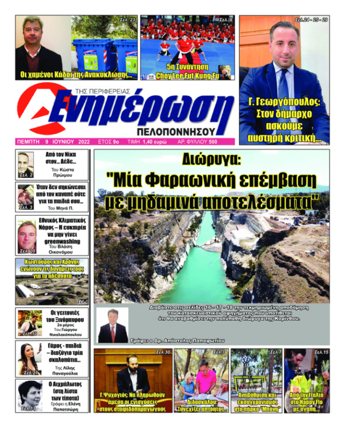 Πρωτοσέλιδα Πρωτοσέλιδο 9 Ιουνίου 2022 Από Ενημέρωση Πελοποννήσου 8 Ιουνίου 2022 FacebookTwitterViberWhatsApp Ακολουθήστε την Ενημέρωση Πελοποννήσου στο Facebook Αποκλειστικές Έρευνες – Συνεντεύξεις και ΆρθραΕιδήσεις από: Ναύπλιο – Άργος – Ερμιονίδα – Τρίπολη – Κορινθία – Αθλητικά – Γερανιός-2xalkidisfrontlabrou ΑΞΙΖΕΙ ΝΑ ΔΙΑΒΑΣΕΤΕ Featured 2 ΕΛΤΑ Αργολίδας: Κενές απαντήσεις και καμία δέσμευση από το Υπουργείο 17 Απριλίου 2026 Featured 2 Τριήμερο Θεατροπαιδαγωγικών δράσεων στο Ναύπλιο 17 Απριλίου 2026 Featured 2 “Σεληνιακό τοπίο” ο δρόμος Τρίπολης – Στεμνίτσας 17 Απριλίου 2026 Featured 2 Υπεύθυνες οι υπηρεσίες της Περιφέρειας για τον κάμπο των Διδύμων 17 Απριλίου 2026 Αργολίδα Ημερίδα στο Ναύπλιο: Σεξουαλική Κακοποίηση Ατόμων με Αναπηρία 17 Απριλίου 2026 Ελλάδα “Επείγουσα ανάγκη για μέτρα ενίσχυσης των ΑμεΑ” 17 Απριλίου 2026 Αργολίδα ΚΚΕ: Μεγάλη Εκδήλωση στο Ναύπλιο για την Ακροναυπλία 16 Απριλίου 2026 Αργολίδα Ημερίδα Επιμελητηρίου Αργολίδας: “Παράγουμε στην Ελλάδα” 16 Απριλίου 2026 Αργολίδα Γονίδια και Επιλογές: Εκδήλωση του ΚΕΣ στο Ναύπλιο για τη Γενετική 16 Απριλίου 2026 Τελευταίες ειδήσεις Αργολίδα Ημερίδα στο Ναύπλιο: Σεξουαλική Κακοποίηση Ατόμων με Αναπηρία 17 Απριλίου 2026 Ελλάδα “Επείγουσα ανάγκη για μέτρα ενίσχυσης των ΑμεΑ” 17 Απριλίου 2026 Αργολίδα ΚΚΕ: Μεγάλη Εκδήλωση στο Ναύπλιο για την Ακροναυπλία 16 Απριλίου 2026 Αργολίδα Ημερίδα Επιμελητηρίου Αργολίδας: “Παράγουμε στην Ελλάδα” 16 Απριλίου 2026 Αργολίδα Γονίδια και Επιλογές: Εκδήλωση του ΚΕΣ στο Ναύπλιο για τη Γενετική 16 Απριλίου 2026 Περιφέρεια 14 συλλήψεις σε Αργολίδα, Κορινθία & Λακωνία 16 Απριλίου 2026 Περιφέρεια Σοκαριστικά ευρήματα στον Πάρνωνα: 95 δηλητηριασμένα δολώματα και ένας νεκρός σκύλος 16 Απριλίου 2026 Αθλητισμός Ο παλμός του μπάσκετ χτυπά δυνατά στην Τρίπολη 16 Απριλίου 2026 Τα πιο δημοφιλη Υπεύθυνες οι υπηρεσίες της Περιφέρειας για τον κάμπο των Διδύμων Featured 2 17 Απριλίου 2026 Όταν ο Τόνι Πινέλι συνάντησε τον Δημήτρη Κουρούνη Άρθρα 17 Φεβρουαρίου 2020 Πανικόβλητος συκοφάντης ο Δήμαρχος Γεωργόπουλος Άρθρα 10 Απριλίου 2026 ΕΛΤΑ Αργολίδας: Κενές απαντήσεις και καμία δέσμευση από το Υπουργείο Featured 2 17 Απριλίου 2026 Μούχλι Αρκαδίας: Η εγκατάλειψη της ιστορικής καστροπολιτείας Αρκαδία 15 Απριλίου 2026 Αρχική σελίδα