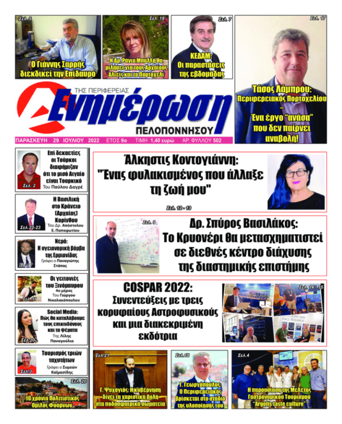 Πρωτοσέλιδα Πρωτοσέλιδο 29 Ιουλίου 2022 Από Ενημέρωση Πελοποννήσου 28 Ιουλίου 2022 FacebookTwitterViberWhatsApp Ακολουθήστε την Ενημέρωση Πελοποννήσου στο Facebook Αποκλειστικές Έρευνες – Συνεντεύξεις και ΆρθραΕιδήσεις από: Ναύπλιο – Άργος – Ερμιονίδα – Τρίπολη – Κορινθία – Αθλητικά – Γερανιός-2xalkidisfrontlabrou ΑΞΙΖΕΙ ΝΑ ΔΙΑΒΑΣΕΤΕ Featured 2 ΕΛΤΑ Αργολίδας: Κενές απαντήσεις και καμία δέσμευση από το Υπουργείο 17 Απριλίου 2026 Featured 2 Τριήμερο Θεατροπαιδαγωγικών δράσεων στο Ναύπλιο 17 Απριλίου 2026 Featured 2 “Σεληνιακό τοπίο” ο δρόμος Τρίπολης – Στεμνίτσας 17 Απριλίου 2026 Featured 2 Υπεύθυνες οι υπηρεσίες της Περιφέρειας για τον κάμπο των Διδύμων 17 Απριλίου 2026 Αργολίδα Ημερίδα στο Ναύπλιο: Σεξουαλική Κακοποίηση Ατόμων με Αναπηρία 17 Απριλίου 2026 Ελλάδα “Επείγουσα ανάγκη για μέτρα ενίσχυσης των ΑμεΑ” 17 Απριλίου 2026 Αργολίδα ΚΚΕ: Μεγάλη Εκδήλωση στο Ναύπλιο για την Ακροναυπλία 16 Απριλίου 2026 Αργολίδα Ημερίδα Επιμελητηρίου Αργολίδας: “Παράγουμε στην Ελλάδα” 16 Απριλίου 2026 Αργολίδα Γονίδια και Επιλογές: Εκδήλωση του ΚΕΣ στο Ναύπλιο για τη Γενετική 16 Απριλίου 2026 Τελευταίες ειδήσεις Αργολίδα Ημερίδα στο Ναύπλιο: Σεξουαλική Κακοποίηση Ατόμων με Αναπηρία 17 Απριλίου 2026 Ελλάδα “Επείγουσα ανάγκη για μέτρα ενίσχυσης των ΑμεΑ” 17 Απριλίου 2026 Αργολίδα ΚΚΕ: Μεγάλη Εκδήλωση στο Ναύπλιο για την Ακροναυπλία 16 Απριλίου 2026 Αργολίδα Ημερίδα Επιμελητηρίου Αργολίδας: “Παράγουμε στην Ελλάδα” 16 Απριλίου 2026 Αργολίδα Γονίδια και Επιλογές: Εκδήλωση του ΚΕΣ στο Ναύπλιο για τη Γενετική 16 Απριλίου 2026 Περιφέρεια 14 συλλήψεις σε Αργολίδα, Κορινθία & Λακωνία 16 Απριλίου 2026 Περιφέρεια Σοκαριστικά ευρήματα στον Πάρνωνα: 95 δηλητηριασμένα δολώματα και ένας νεκρός σκύλος 16 Απριλίου 2026 Αθλητισμός Ο παλμός του μπάσκετ χτυπά δυνατά στην Τρίπολη 16 Απριλίου 2026 Τα πιο δημοφιλη Υπεύθυνες οι υπηρεσίες της Περιφέρειας για τον κάμπο των Διδύμων Featured 2 17 Απριλίου 2026 Όταν ο Τόνι Πινέλι συνάντησε τον Δημήτρη Κουρούνη Άρθρα 17 Φεβρουαρίου 2020 ΕΛΤΑ Αργολίδας: Κενές απαντήσεις και καμία δέσμευση από το Υπουργείο Featured 2 17 Απριλίου 2026 Πανικόβλητος συκοφάντης ο Δήμαρχος Γεωργόπουλος Άρθρα 10 Απριλίου 2026 Μούχλι Αρκαδίας: Η εγκατάλειψη της ιστορικής καστροπολιτείας Αρκαδία 15 Απριλίου 2026 Αρχική σελίδα