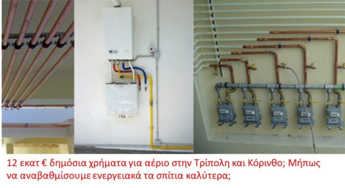 Με ενδιαφέρον διαβάσαμε ότι 12 εκατ. € θα δαπανηθούν από το ΕΣΠΑ για την περιοχή της Κορίνθου και Τρίπολης (Δήμος Κορινθίων) για τις συνδέσεις των καυστήρων φυσικού αερίου. Παρά τα καλά λόγια του Δημάρχου Βασίλη Νανόπουλος για την έλευση του αερίου, μάλλον ξεχνάμε πως αναφερόμαστε στο ακριβότερο καύσιμο στη θέρμανση (με βάση και τις αναμενόμενες τιμές), με αρκετά χαμηλή απόδοση σε σχέση με τις εναλλακτικές, ενώ από το 2026 με την νέα Ευρωπαϊκή νομοθεσία το κόστος του για θέρμανση στα σπίτια θα εκτιναχθεί.