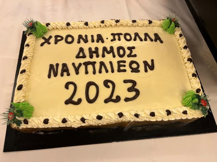 Σε ένα ιδιαίτερα θερμό και γιορτινό κλίμα, μετά από τρία χρόνια πανδημίας, με ελπιδοφόρα μηνύματα για τη νέα χρονιά, με την ευλογία του Μητροπολίτη Αργολίδας κ.κ. Νεκταρίου και με την παρουσία του Δημάρχου Ναυπλιέων Δημήτρη Κωστούρου, Αντιδημάρχων, Δημοτικών Συμβούλων, των Προέδρων των Τοπικών Συμβουλίων, του Λιμενάρχη Ναυπλίου, του προέδρου της Πρωτοβάθμιας Διεύθυνσης Εκπαίδευσης, των προέδρων των Πολιτιστικών Συλλόγων των Απανταχού Ναυπλιέων “Ο ΝΑΥΠΛΙΟΣ” και του Προοδευτικού Συλλόγου Ναυπλίου «Ο Παλαμήδης», πολιτευτών και φυσικά των υπαλλήλων του Δήμου Ναυπλιέων πραγματοποιήθηκε την Παρασκευή 3 Φεβρουαρίου 2023, στην αίθουσα του ξενοδοχείου «ΑΜΑΛΙΑ» η κοπή της πρωτοχρονιάτικης πίτας.