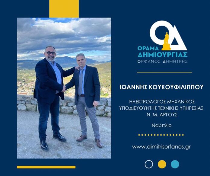 Καλωσορίζω στην παράταξη μας με μεγάλη χαρά τoν Γιάννη Κουκουφιλίππου, Ηλεκτρολόγο Μηχανικό | Υποδιευθυντή Τεχνικής Υπηρεσίας Ν.Μ Άργους & του εύχομαι καλή επιτυχία!