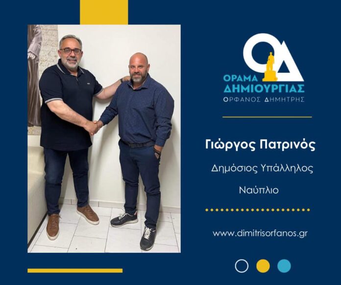 «Αξιότιμοι συμπολίτες μου είμαι ο Γεώργιος Πατρινός , πατέρας δύο ανήλικων παιδιών και δημόσιος υπάλληλος στο υπουργείο προστασίας του Πολίτη. Από το 2004-2013 υπηρέτησα στη δημοτική αστυνομία, αφουγκράστηκα τα προβλήματα όλων των κοινωνικών στρωμάτων και συμμετείχα με αυταπάρνηση και ευαισθησία στην επίλυση τους. Ήμουν και είμαι πάντα δίπλα στον κάθε δημότη που έχει ανάγκη βοήθειας με ακούραστη διάθεση για να βελτιώσω την ποιότητα της ζωής του, χωρίς ενδοιασμούς. Τα τελευταία χρόνια μένω μόνιμα στο Ναύπλιο το οποίο νιώθω πατρίδα μου.