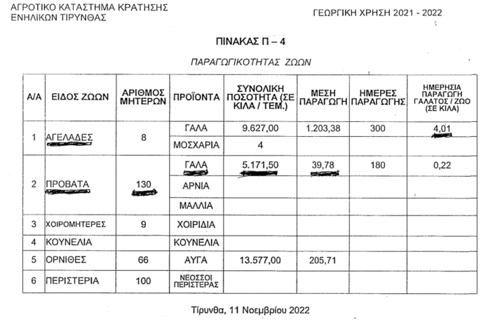 Επίσης η ζημία των 111.087,93 € για το γεωργικό έτος 2021 – 2022 προήλθε και από την εκμετάλλευση του ζωϊκού κεφαλαίου. Από τα 235 πρόβατα εκ των οποίων τα 130 ήταν παραγωγικά. Από 17 αγελάδες εκ των οποίων οι 8 ήταν παραγωγικές οι υπόλοιπες ήταν υπερήλικες όπως αναφέρουν.