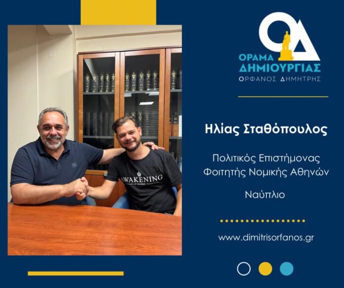 Καλωσορίζω στην παράταξή μας, τον Ηλία Σταθόπουλο! Πολιτικός επιστήμονα, απόφοιτος του τμήματος Πολιτικής Επιστήμης και Δημόσιας Διοίκησης του ΕΚΠΑ, φοιτητή Νομικής Αθηνών και εκλεγμένο μέλος της Συντονιστικής Επιτροπής της Τοπικής Οργάνωσης του ΠΑΣΟΚ – Κινήματος Αλλαγής του Δήμου Ναυπλιέων. Η εμπιστοσύνη των νέων, που αυξάνεται στην παράταξη μας καθημερινά , οι ιδέες και το Όραμα για έναν Δήμο πρωτότυπο και πρότυπο αποτελούν για όλους εμάς το σπουδαιότερο εφόδιο στον αγώνα που κάνουμε για ένα «αύριο» δίχως φόβο, μα γεμάτο όνειρα για τον Δήμο μας.
