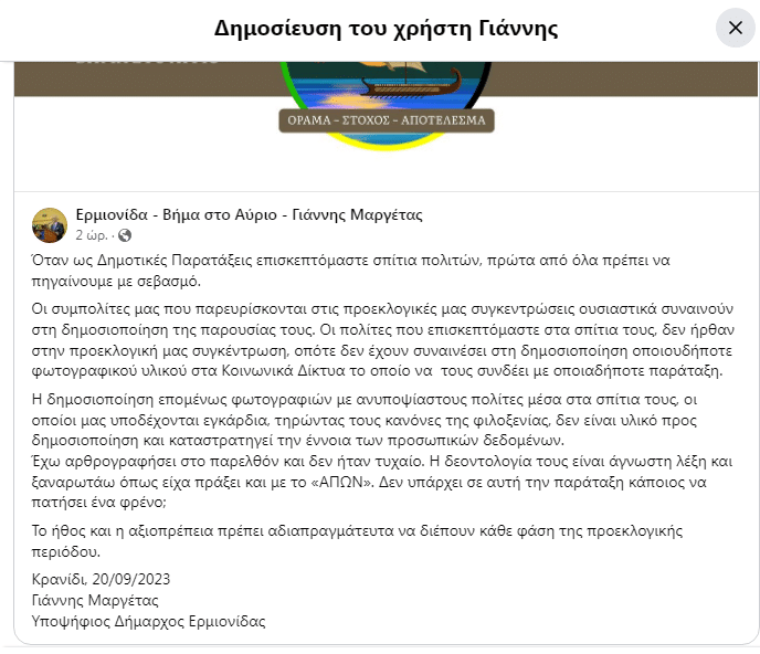 Η ανακοίνωση του κ. Μαργέτα, με την οποία συντονίζεται πλήρως με τον κουκουλοφόρο συκοφάντη του διαδικτύου: