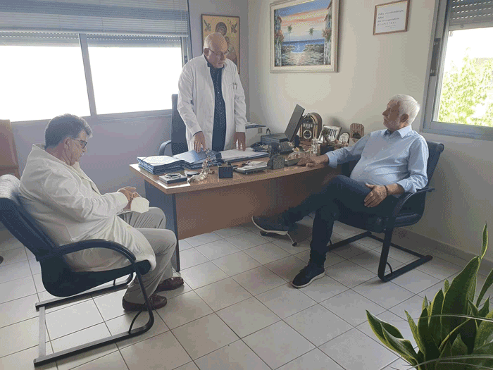 Στο περιθώριο της επίσκεψης στην Καλαμάτα ο Πέτρος Τατούλης και η Νέα Πελοπόννησος βρέθηκαν στο Κέντρο Υγείας Καλαμάτας και συναντήθηκαν με τον διευθυντή του Κέντρου Υγείας Καλαμάτας, κ. Γεώργιο Λαφαζάνο, Ιατρό Πνευμονολόγο αλλά και τον Δημήτριο Μαστοράκη, αναπληρωτή Διευθυντή του Κέντρου Υγείας Καλαμάτας και Ιατρό Γενικής Ιατρικής.