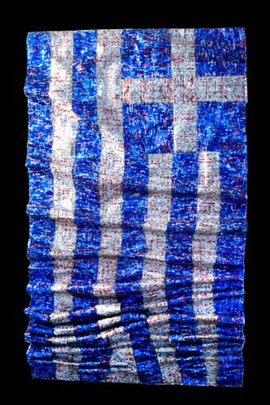 Νίκος Φλώρος: Σημασία έχει η ιδέα και η έμπνευση. Ποιος θα μπορούσε να φανταστεί πως ο Μιχαήλ Άγγελος θα φιλοτεχνούσε την οροφή της Καπέλα Σιξτίνα με κρόκους αυγών και χρώμα. Εγώ έχω επιλέξει τα κουτάκια από αλουμίνιο, με ενδιαφέρει η λάμψη τους και τα χρώματα που βγάζει το υλικό. Επειδή είναι ένα μέταλλο που χαρακτηρίζει την εποχή μας και έχει πολυδιάστατη σημασία, ενώ περνά πολλά μηνύματα ακόμη και της ανακύκλωσης. Η χρονική περίοδος που διανύουμε είναι υπέρ – καταναλωτική και ο κόσμος δεν προτιμά την πνευματική τροφή. Τα κουτάκια αλουμινίου τα αποδομώ, τα μετατρέπω και τα αναγάγω από σύμβολο της καταναλωτικής κοινωνίας σε έργα Τέχνης.