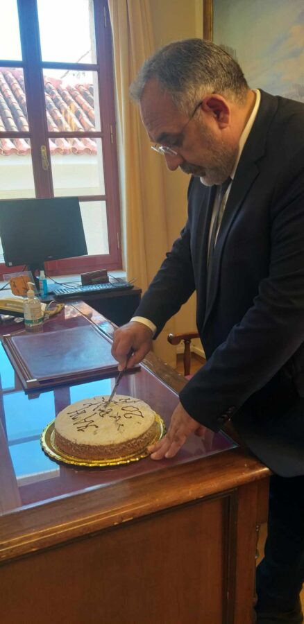Το φλουρί της Βασιλόπιτας έπεσε στον δημοτικό σύμβουλο Χρήστο Γκούμα, ο οποίος μέλει να είναι και ο τυχερός της χρονιάς. Μετά την κοπή της πίτας, ακολούθησαν οι αναμνηστικές φωτογραφίες στην είσοδο του Δημαρχείου.