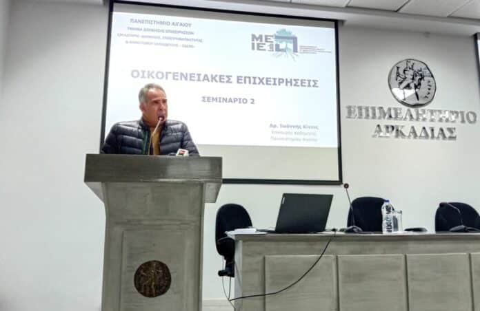 Ο εισηγητής Δρ. Ιωάννης Κίνιας, Επίκουρος Καθηγητής του Τμήματος Διοίκησης Επιχειρήσεων, του Πανεπιστημίου Αιγαίου και Επιστημονικός Συνεργάτης των Προγραμμάτων Μεταπτυχιακών Σπουδών «Διοίκηση Επιχειρήσεων – ΜΒΑ» και «Executive MBA», φανερά ενθουσιασμένος από την πρόσκληση του κ. Γιάννη Τρουπή για τη διοργάνωση του σεμιναρίου, ανέφερε ότι το Επιμελητήριο Αρκαδίας, είναι από τα πρώτα, αν όχι το πρώτο, που διοργανώνει αυτό το είδος σεμιναρίου.