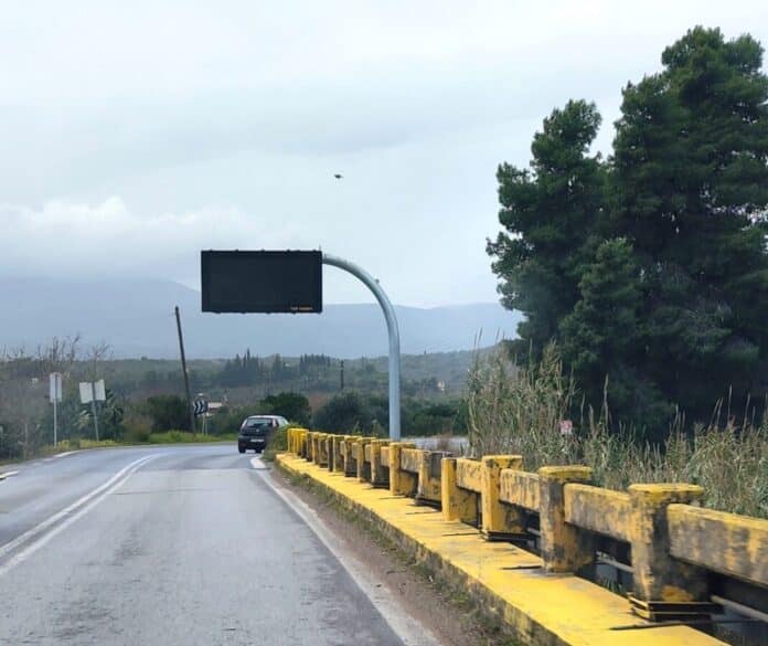 Σχετικά με το έργο της περιφέρειας Πελοποννήσου, προϋπολογισμού 1.618.000 ευρώ, «προμήθεια και τοποθέτηση 25 πινακίδων μεταβλητών μηνυμάτων οδικής κυκλοφορίας» και δεδομένου της τοποθέτησης μίας εξ’ αυτών στη γέφυρα της Βελίκας πριν ακριβώς από στροφή σε μια άκρως επικίνδυνη θέση και μίας δεύτερης στην περιοχή της Βέργας στο ύψος της εκκλησίας Αγίας Σιών σε ένα σημείο χωρίς ορατότητα (διασταύρωση με οδό Σιών) και με αρκετή κίνηση ιδιαίτερα τους καλοκαιρινούς μήνες.