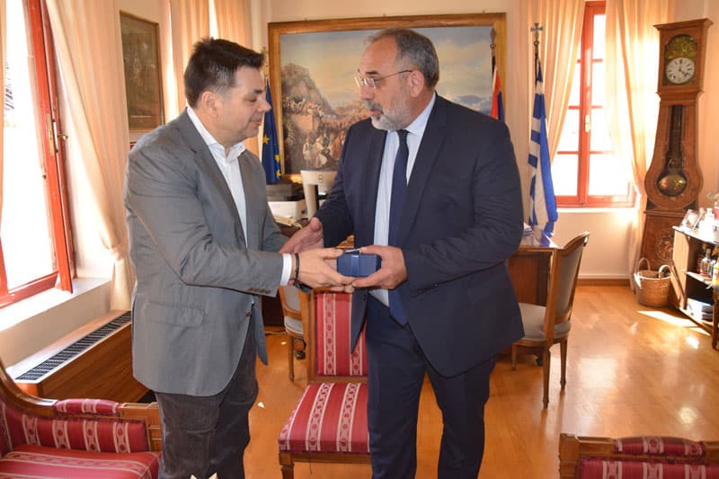 Ο Δήμαρχος αποχαιρέτησε τον Αμερικανό πρέσβη με ευχαριστίες, ευχές και με προσφορά συμβολικών δώρων με αναφορά στο Ναύπλιο και την ιστορία του.