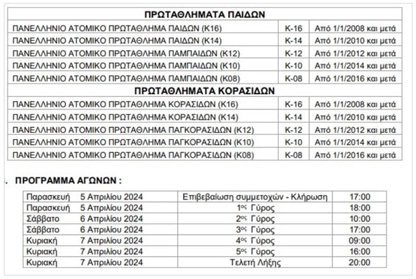 Ευχόμαστε καλή επιτυχία στους διοργανωτές, τους διαιτητές και φυσικά σε όλους τους αθλητές που θα αγωνιστούν