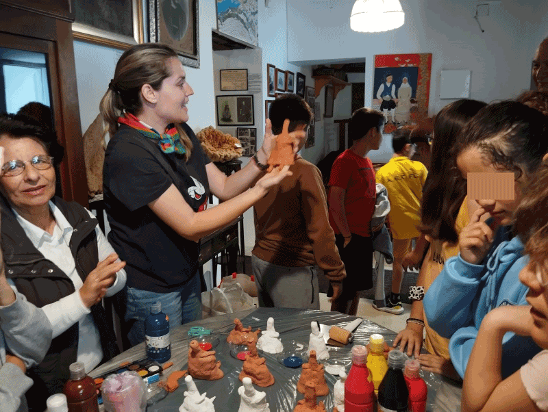 Στη συνέχεια η Τζωρτζίνα Σιάννα Τζιέρη, δασκάλα της Δ΄ τάξης και Γραμματέας του ΙΛΜΕ έδειξε στους μαθητές πώς κατασκευάζεται με τη χρήση πηλού μία κωδωνόσχημη πλαγγόνα. Τέλος οι μαθητές ζωγράφισαν χειροποίητες πλαγγόνες με τη βοήθεια της Παρασκευής Σκούρτη Δαγρέ, δασκάλας της Ε΄ τάξης και της Κατερίνας Χατζηζήση Σκούρτη, Αντιπροέδρου του ΙΛΜΕ.