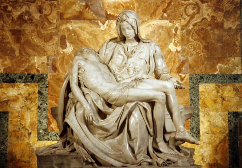 Μιχαήλ Άγγελος, «Πιετά». Στο γλυπτό αυτό μάρμαρο η Παρθένος Μαρία κρατά στα γόνατά της το αποκαθηλωμένο σώμα του Ιησού.