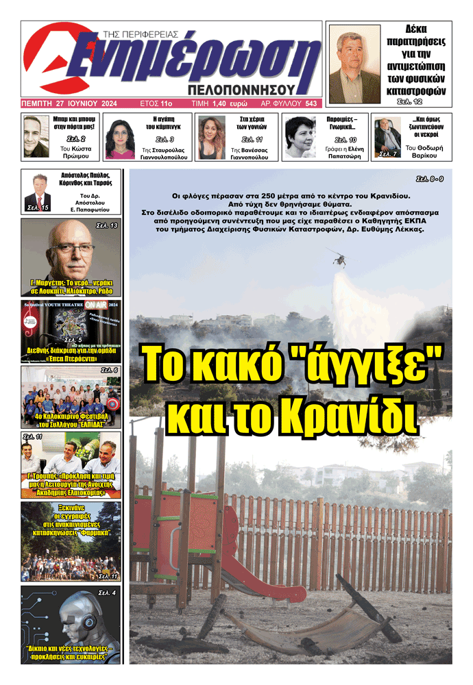 Πρωτοσέλιδα Πρωτοσέλιδο 27 Ιουνίου 2024 Από Ενημέρωση Πελοποννήσου 26 Ιουνίου 2024 FacebookTwitterViberWhatsApp Ακολουθήστε την Ενημέρωση Πελοποννήσου στο Facebook Αποκλειστικές Έρευνες – Συνεντεύξεις και ΆρθραΕιδήσεις από: Ναύπλιο – Άργος – Ερμιονίδα – Τρίπολη – Κορινθία – Αθλητικά – Γερανιός-2xalkidisfrontlabrou ΑΞΙΖΕΙ ΝΑ ΔΙΑΒΑΣΕΤΕ Featured 2 ΕΛΤΑ Αργολίδας: Κενές απαντήσεις και καμία δέσμευση από το Υπουργείο 17 Απριλίου 2026 Featured 2 Τριήμερο Θεατροπαιδαγωγικών δράσεων στο Ναύπλιο 17 Απριλίου 2026 Featured 2 “Σεληνιακό τοπίο” ο δρόμος Τρίπολης – Στεμνίτσας 17 Απριλίου 2026 Featured 2 Υπεύθυνες οι υπηρεσίες της Περιφέρειας για τον κάμπο των Διδύμων 17 Απριλίου 2026 Αργολίδα Ημερίδα στο Ναύπλιο: Σεξουαλική Κακοποίηση Ατόμων με Αναπηρία 17 Απριλίου 2026 Ελλάδα “Επείγουσα ανάγκη για μέτρα ενίσχυσης των ΑμεΑ” 17 Απριλίου 2026 Αργολίδα ΚΚΕ: Μεγάλη Εκδήλωση στο Ναύπλιο για την Ακροναυπλία 16 Απριλίου 2026 Αργολίδα Ημερίδα Επιμελητηρίου Αργολίδας: “Παράγουμε στην Ελλάδα” 16 Απριλίου 2026 Αργολίδα Γονίδια και Επιλογές: Εκδήλωση του ΚΕΣ στο Ναύπλιο για τη Γενετική 16 Απριλίου 2026 Τελευταίες ειδήσεις Αργολίδα Ημερίδα στο Ναύπλιο: Σεξουαλική Κακοποίηση Ατόμων με Αναπηρία 17 Απριλίου 2026 Ελλάδα “Επείγουσα ανάγκη για μέτρα ενίσχυσης των ΑμεΑ” 17 Απριλίου 2026 Αργολίδα ΚΚΕ: Μεγάλη Εκδήλωση στο Ναύπλιο για την Ακροναυπλία 16 Απριλίου 2026 Αργολίδα Ημερίδα Επιμελητηρίου Αργολίδας: “Παράγουμε στην Ελλάδα” 16 Απριλίου 2026 Αργολίδα Γονίδια και Επιλογές: Εκδήλωση του ΚΕΣ στο Ναύπλιο για τη Γενετική 16 Απριλίου 2026 Περιφέρεια 14 συλλήψεις σε Αργολίδα, Κορινθία & Λακωνία 16 Απριλίου 2026 Περιφέρεια Σοκαριστικά ευρήματα στον Πάρνωνα: 95 δηλητηριασμένα δολώματα και ένας νεκρός σκύλος 16 Απριλίου 2026 Αθλητισμός Ο παλμός του μπάσκετ χτυπά δυνατά στην Τρίπολη 16 Απριλίου 2026 Τα πιο δημοφιλη Υπεύθυνες οι υπηρεσίες της Περιφέρειας για τον κάμπο των Διδύμων Featured 2 17 Απριλίου 2026 Όταν ο Τόνι Πινέλι συνάντησε τον Δημήτρη Κουρούνη Άρθρα 17 Φεβρουαρίου 2020 Πανικόβλητος συκοφάντης ο Δήμαρχος Γεωργόπουλος Άρθρα 10 Απριλίου 2026 ΕΛΤΑ Αργολίδας: Κενές απαντήσεις και καμία δέσμευση από το Υπουργείο Featured 2 17 Απριλίου 2026 “Σεληνιακό τοπίο” ο δρόμος Τρίπολης – Στεμνίτσας Featured 2 17 Απριλίου 2026 Αρχική σελίδα