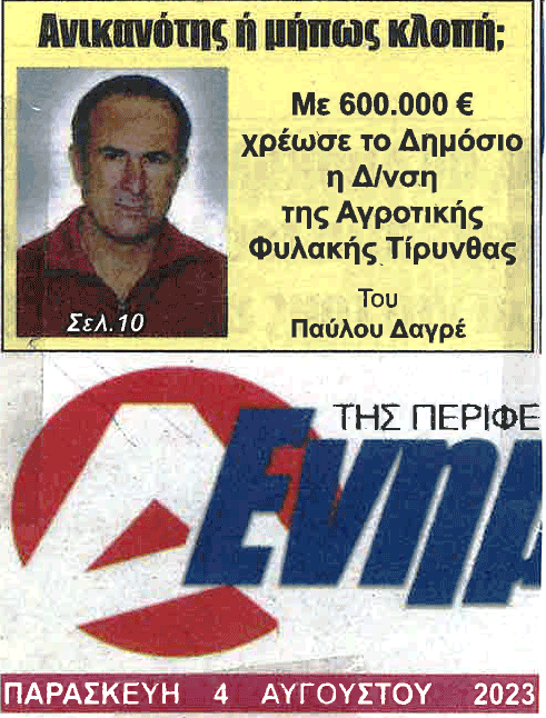 Στις 4 Αυγούστου 2023 είχαμε δημοσιεύσει άρθρο με τίτλο: Ανικανότης ή μήπως κλοπή; Με 600.000 € χρέωσε το Δημόσιο η Δ/ντρια της Αγροτικής Φυλακής Τίρυνθας. Στον απολογισμό που αποστέλλει κάθε χρόνο στο Υπουργείο η προϊσταμένη της Φυλακής, παρουσιάζει ζημία αντί κέρδους από 700 στρέμματα εύφορης γης που καλλιεργούν και εκατοντάδες ζώα που εκτρέφουν.