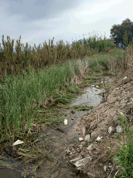 Η συντελούμενη στην περιοχή βλάβη και αλλοίωση του φυσικού περιβάλλοντος είναι πασιφανής. Διερευνώντας το ζήτημα μάθαμε ότι, η κατάσταση αυτή διαμορφώθηκε περί το έτος 2000, αρχικά με τη διέλευση των αγωγών βιολογικού και ύδρευσης δυτικά του παραλιακού δρόμου και ύστερα με την κατασκευή της σημερινής γέφυρας. Αυτά διατάραξαν την κοίτη και από τότε λιμνάζουν τα νερά ανατολικά της γέφυρας όλο το χρόνο, λόγω και της μικρής κλίσης του εκεί φυσικού εδάφους.