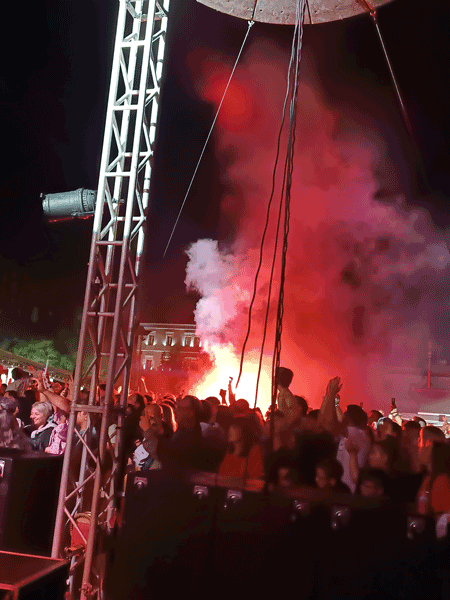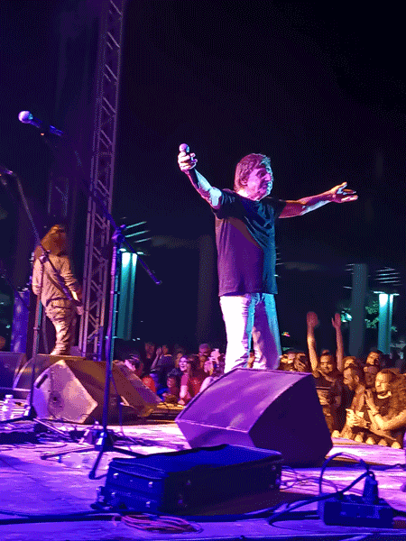 Αντήλλαξε λόγια αγάπης και λατρείας με τους συντοπίτες του και τους φανατικούς του θαυμαστές όλων των ηλικιών. Ατελείωτα χειροκροτήματα, κραυγές θαυμασμού και χοροπηδητά σε ρυθμούς ροκ μαρτυρούσαν τον ενθουσιασμό και την έκσταση των παρευρισκομένων.