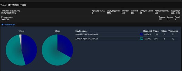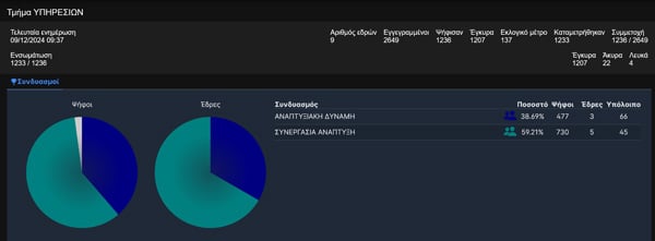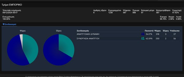 Ψήφισαν 2389 μέλη, με 1274 ψήφους στον κ. Δαμούλο και 1054 στον συνδυασμό του κ. Βασιλόπουλου “Αναπτυξιακή Δύναμη“.