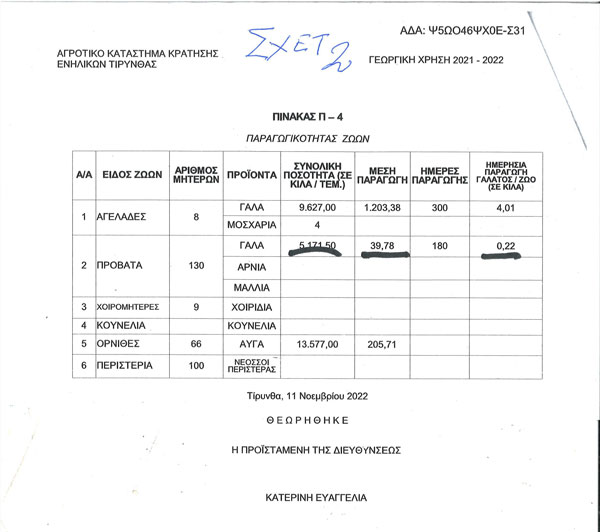Δηλαδή τα 173 πρόβατα της Αγροτικής Φυλακής Τίρυνθας την περίοδο 2020-2021 θα έπρεπε να είχαν γεννήσει λαμβάνοντας την ελάχιστη τιμή 173χ1,5=258 αρνιά και όχι 131! που δήλωσε η Δ/ντρια κα Κατερίνη Ευαγγελία.