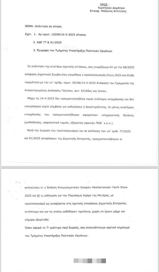 Η απάντηση που παρασχέθηκε και καταγράφεται στο επίσημο έγγραφο είναι σαφέστατη. Μηδενικές εγγραφές δωρεών. Κι όμως, εκδηλώσεις έγιναν. Καλλιτεχνικά δρώμενα, συναυλίες, ακόμη και ο Μαραθώνιος Ναυπλίου – όλα αυτά έλαβαν χώρα χωρίς να έχει εγκριθεί προϋπολογισμός, χωρίς επίσημα κονδύλια, χωρίς να έχουν καταγραφεί πόροι.