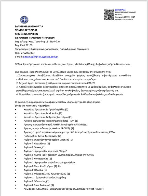 ΥΓ: Στα έγγραφα που δημοσιεύονται είναι η απάντηση της τεχνικής υπηρεσίας σε ερώτημα για το έργο της «Οδικής Ασφάλειας»