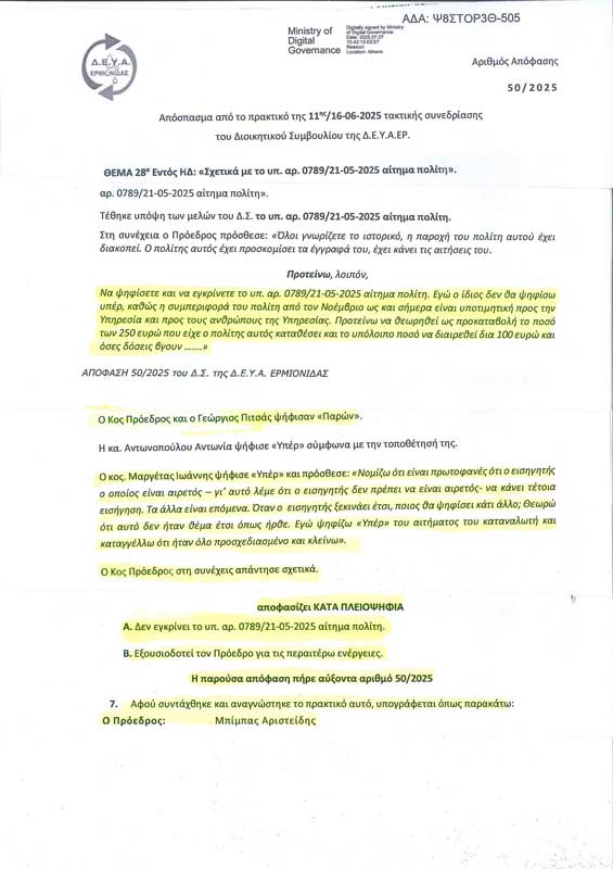 Ο Πρόεδρος της ΔΕΥΑ Δήμου Ερμιονίδας – Ο Εισαγγελέας θα κρίνει ποιος έχει δίκιο!!!