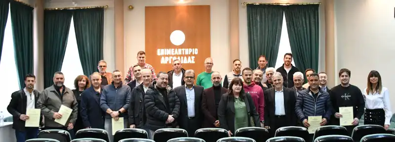 Την Κυριακή 5 Απριλίου 2026 πραγματοποιήθηκε από το Επιμελητήριο Αργολίδας η τελετή απονομής των Βεβαιώσεων Παρακολούθησης στους επιτυχόντες του 8ου και 9ου τμήματος, του ειδικού προγράμματος επαγγελματικής κατάρτισης «Χειριστών Μηχανημάτων Έργου 2ης ειδικότητας» (Κλαρκ).
